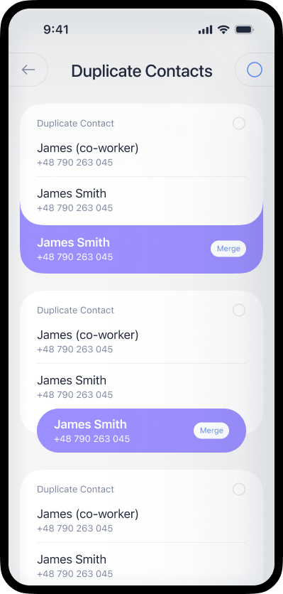 Keep your contact list organized by merging entries with the same name or number.